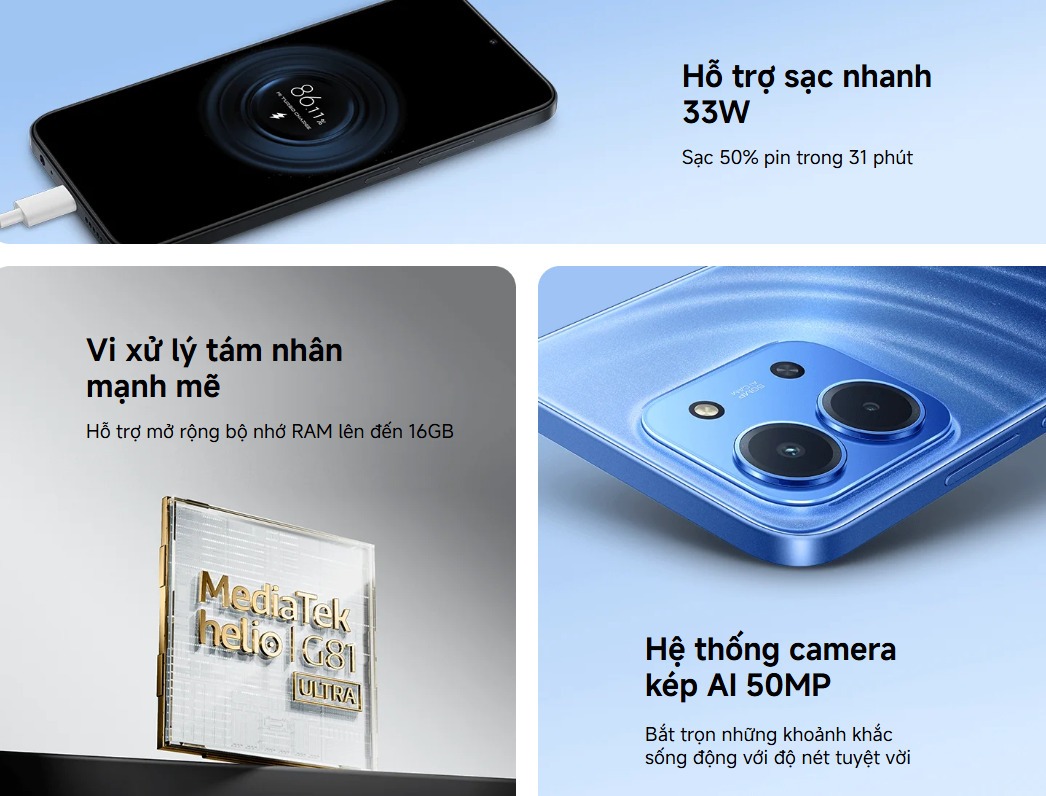 Với hiệu năng Helio G85 mạnh mẽ, pin 6000mAh siêu bền, sạc nhanh 33W, màn hình 90Hz và thiết kế hiện đại, Redmi 15C thực sự là lựa chọn “đáng đồng tiền” trong phân khúc giá rẻ.